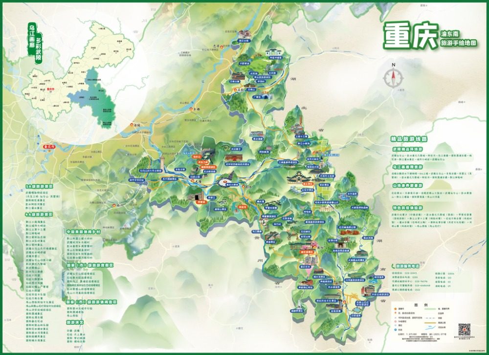 此外,重庆市文化和旅游发展委员会还现场发布了4张《2025重庆旅游手绘地图》。这些地图不仅生动呈现了重庆各区县的核心避暑胜地和清凉线路,更融入了丰富的当地景区景点、文化元素、实用旅行贴士等。